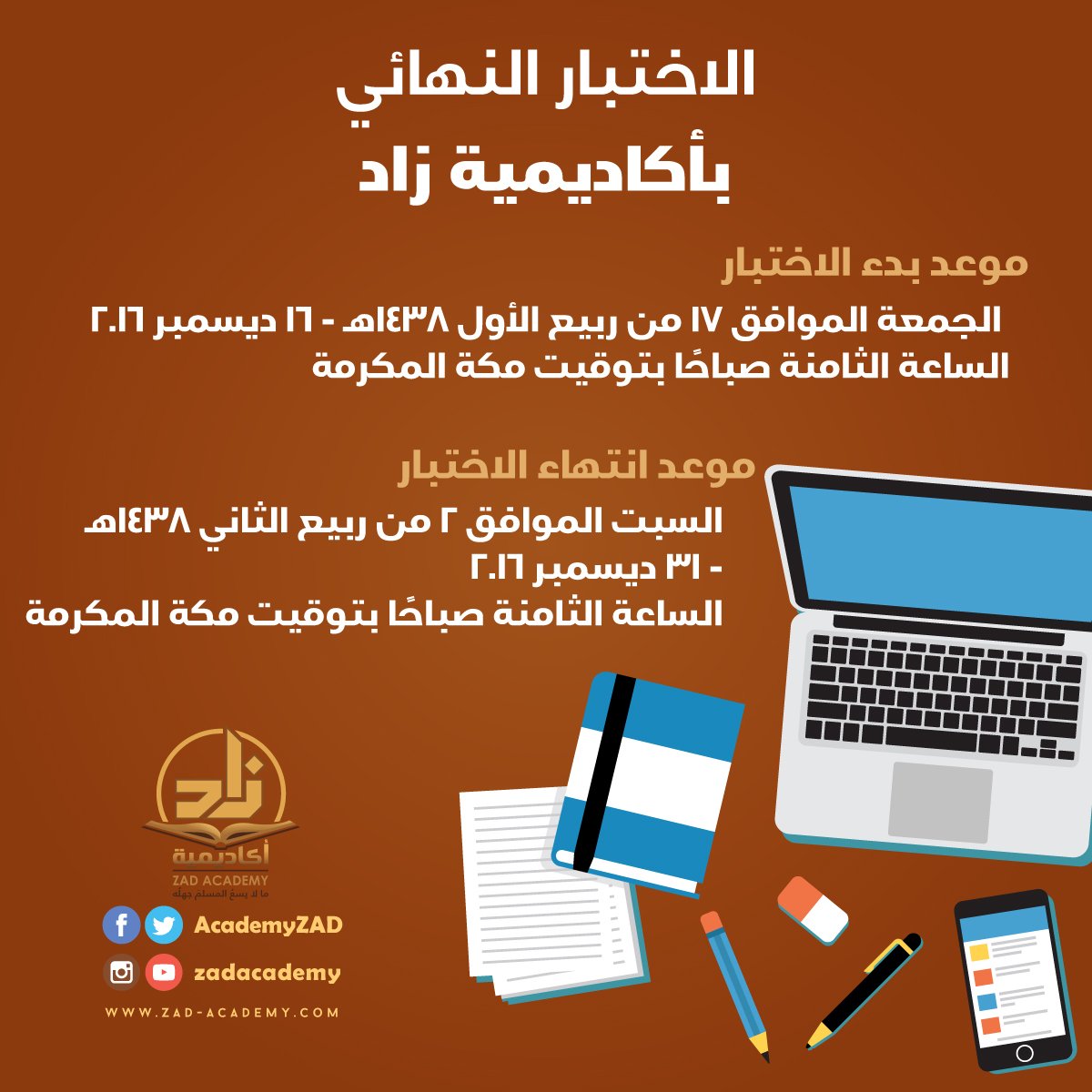 الاختبار النهائي الإ خ و ة الك ر ام أكاديمية زاد العلمية Zad Academy Facebook