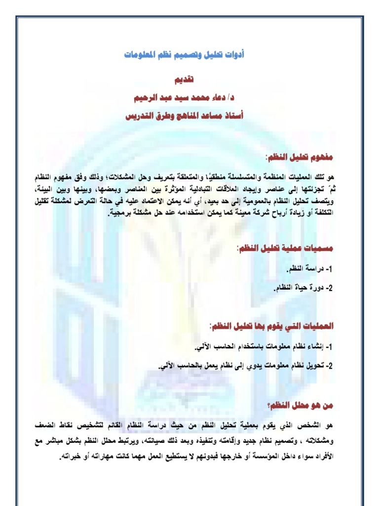 طريقك إلى احتراف البرمجة تحليل وتصميم النظم المعلومات الفصل الأول الدرس 1 من هو محلل النظم Introduction System Analysis And Design Sad