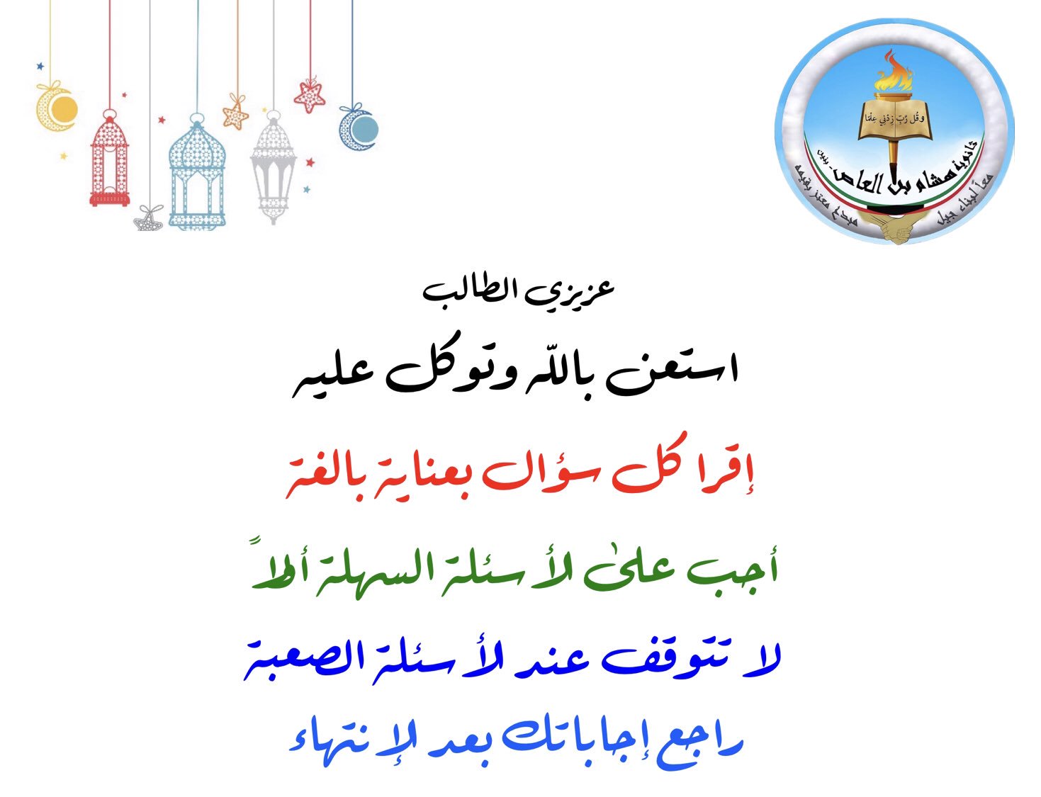 ثانوية هشام بن العاص On Twitter مع تمنياتنا للجميع بالتوفيق والنجاح