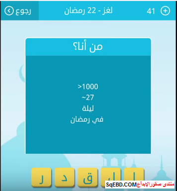 جواب لغز من انا 1000 27 ليلة فى رمضان 22 رمضان من لعبة رشفة رمضانية صقور الإبدآع