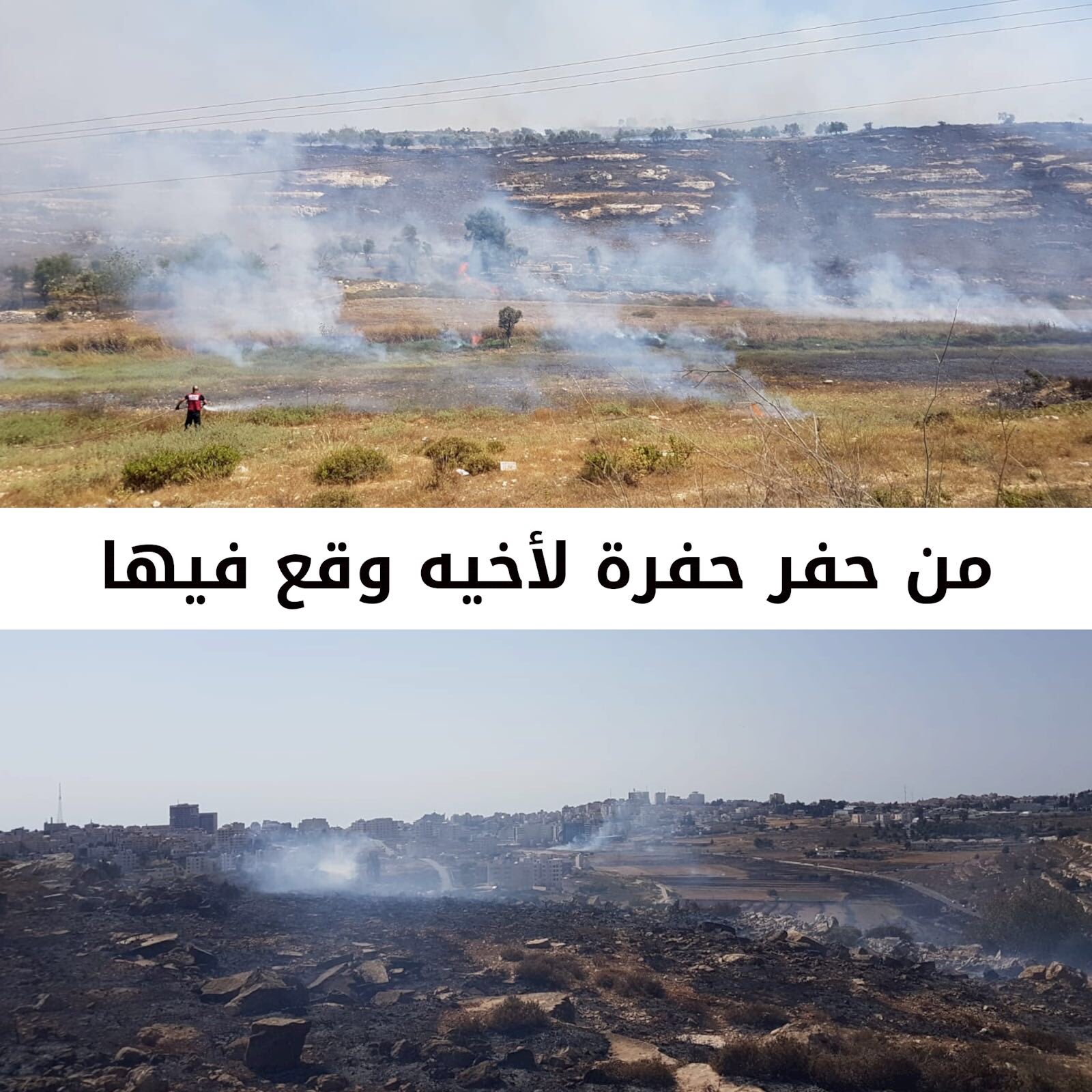 افيخاي ادرعي On Twitter من حفر حفرة لأخيه وقع فيها هذا ما حصل اليوم بالقرب من البيرة في رام الله حيث قاموا شبان باشعال الاطارات للقيام بأعمال شغب مما أدى الى حرائق