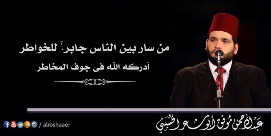 المنشد عبدالرحمن أبوشعر On Twitter من سار بين الناس جابرا للخواطر أدركه الله فى جوف المخاطر Https T Co Wocbjudtfn