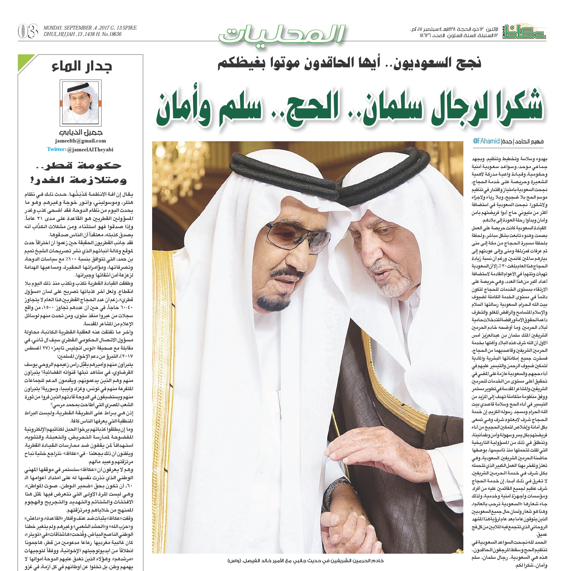 O Xrhsths صحيفة عكاظ Sto Twitter نجح السعوديون أيها الحاقدون موتوا بغيظكم شكرا لرجال سلمان الحج سلم وأمان Https T Co Z8fhzzcwkt عكاظ Okaz Online Https T Co Gq6jsiusj8
