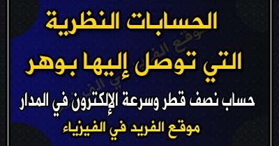 12ـ الحسابات النظرية التي توصل إليها بوهر في ذرة الهيدروجين حساب نصف قطر مدار الإلكترون وسرعته Youtube
