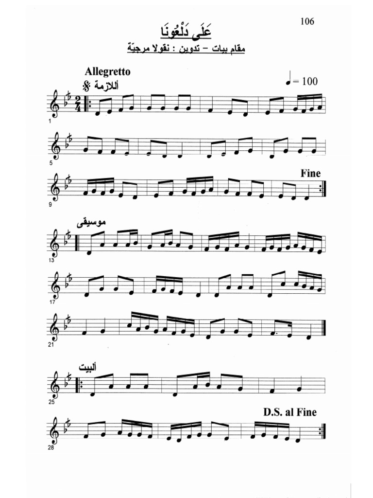 البنت الشلبية نوتة نوطة نوتا مبسطة من علامة الدو Partition El Bint El Shalabyya Youtube