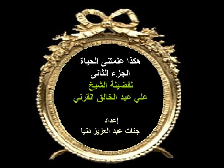 هكذا علمتنى الحياة الجزء الثانى لفضيلة الشيخ علي عبد الخالق القرني إعداد جنات عبد العزيز دنيا Ppt Telecharger