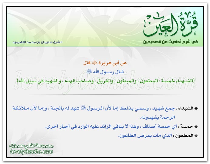 الشهداء خمسة المطعون والمبطون والغريق وصاحب الهدم والشهيد في سبيل الله لفلي سمايل