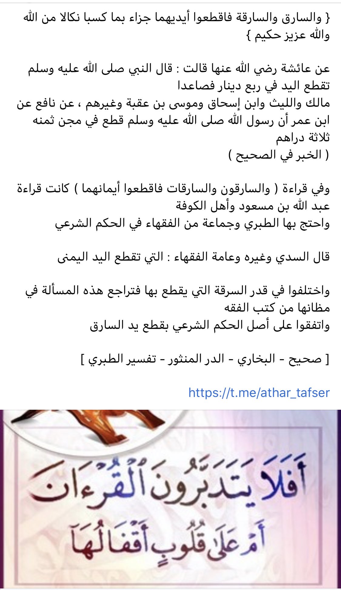 أفلا يتدبرون القرآن على تويتر والسارق والسارقة فاقطعوا أيديهما جزاء بما كسبا نكالا من الله والله عزيز حكيم Https T Co Wpqycv4vhu